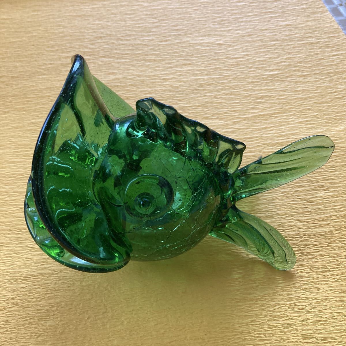 - n6270 金魚 灰皿 ガラス グリーン 昭和レトロ 当時物
