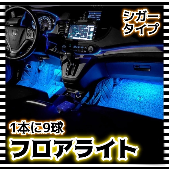 - 足元 イルミネーション LED フロアライト シガーソケット 電源 スイッチ付き アイスブルー フットランプ 車内 装飾 LEDテープ 汎用