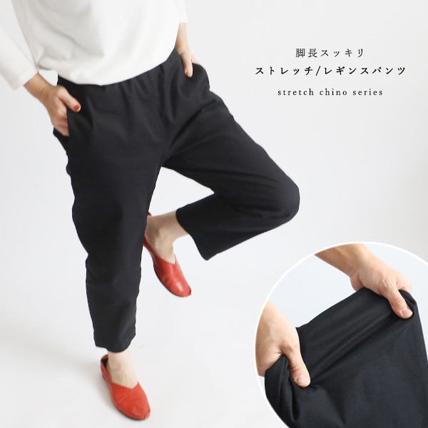 - 秋のパンツ祭り 85cm ストレッチ伸縮コットンチノ ゆるっとスッキリ穿ける脚長パンツ 巻き縫いレギパン チノパンR11