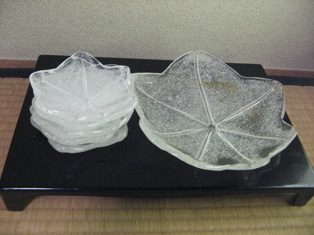 - 皿 ガラス 紅葉 大1 小5 セット 同梱手渡し可 暑い残暑にピッタリ