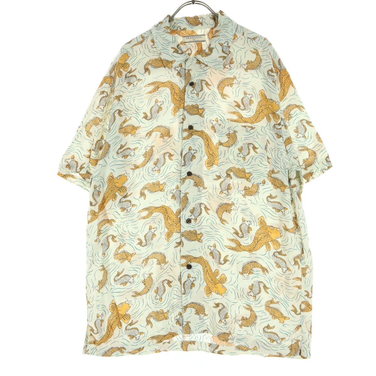 GRANGESTA グランジェスタ 総柄 鯉 和柄 半袖 アロハシャツ 2L ホワイト系 メンズ拍卖