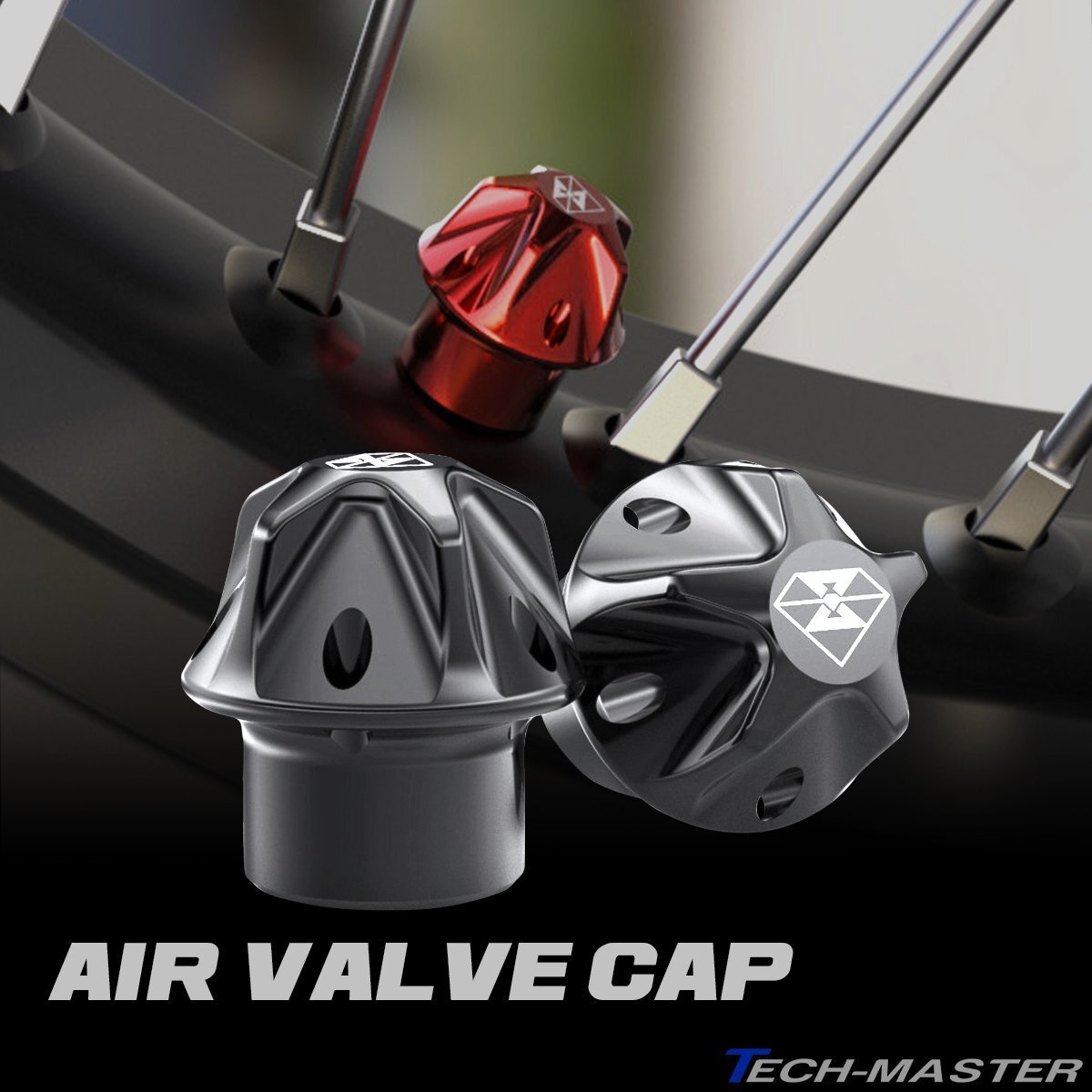 - 汎用 エアバルブキャップ 2個セット タイヤ デザインバルブキャップ T6063アルミニウム ブラック SZ956-BK