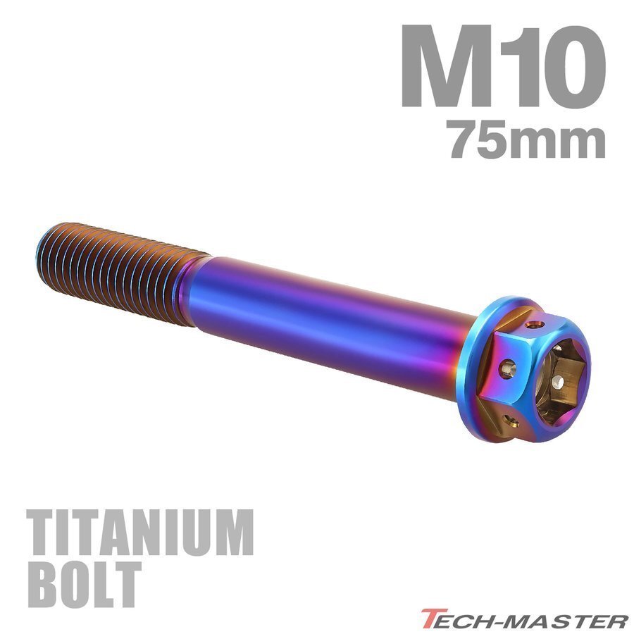 - M10×75mm P1.5 64チタン合金 ホールヘッド 六角ボルト フランジ付き 焼きチタンカラー 車/バイク 1個 JA1095