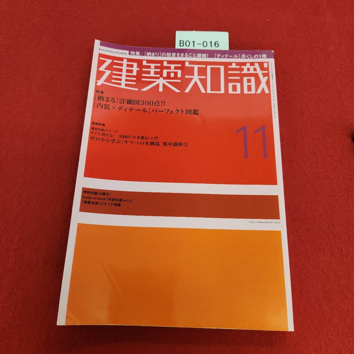 - B01-016 建築知識 2002年11月号 特集 [内装ディテール] パーフェクト図鑑 No.562 エクスナレッジ 付録なし。折れあり。