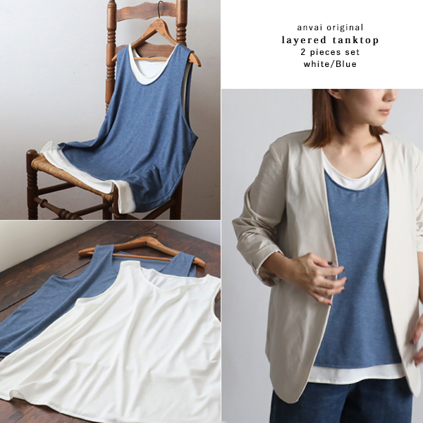 - 秋の新作 61cm スムース伸縮ストレッチ カットソー生地 2枚セット レイヤード タンクトップ ノースリーブ F98