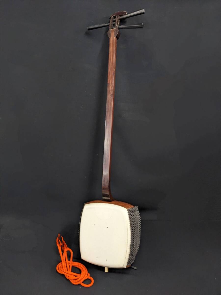 > T275 長唄三味線 紫檀 細棹 皮破れ無し 黒檀糸巻 音緒 組立式/140