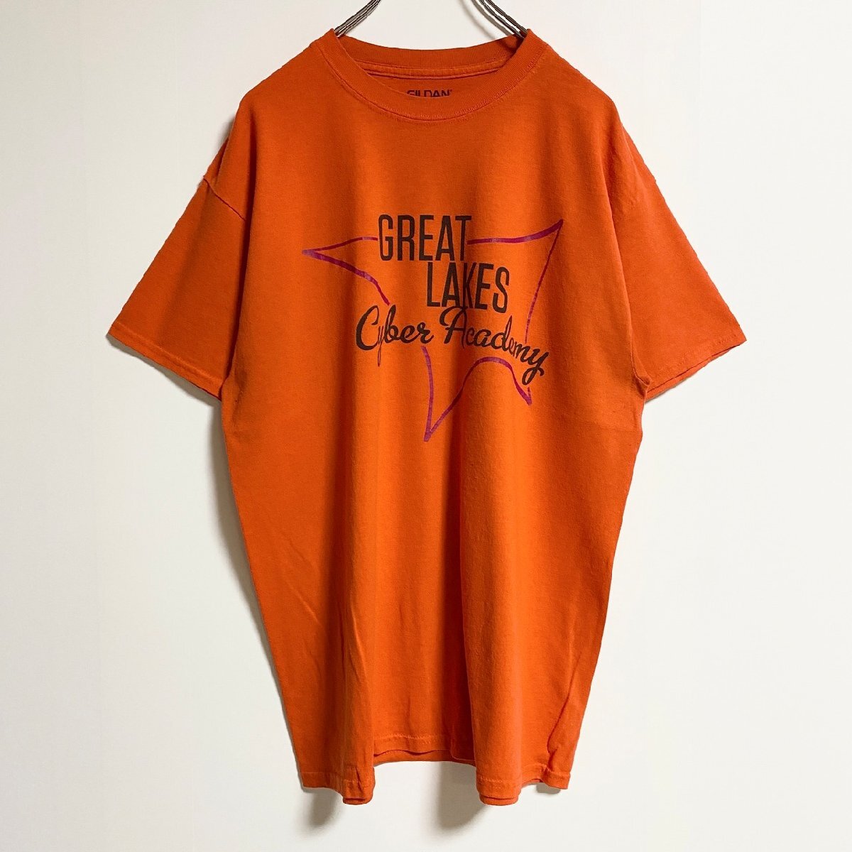 > 古着 used GILDAN ギルダン 半袖プリントTシャツ クルーネック オレンジ GREAT LAKES 春夏服 Lサイズ