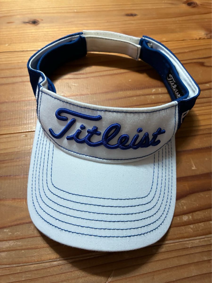 > Titleist ゴルフサンバイザー 美品 サンバイザー 白 青 ワッペン Pro V1 FJ タイトリスト GOLF ゴルフウェア 帽子 日よけ