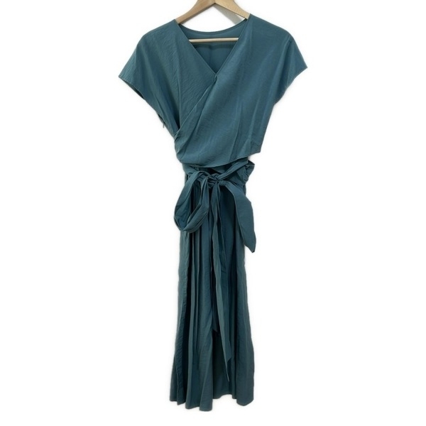 > ビームス BEAMS サイズ38 M - ブルーグリーン レディース Vネック/半袖/ロング/Demi-Luxe/ベルト付き ワンピース