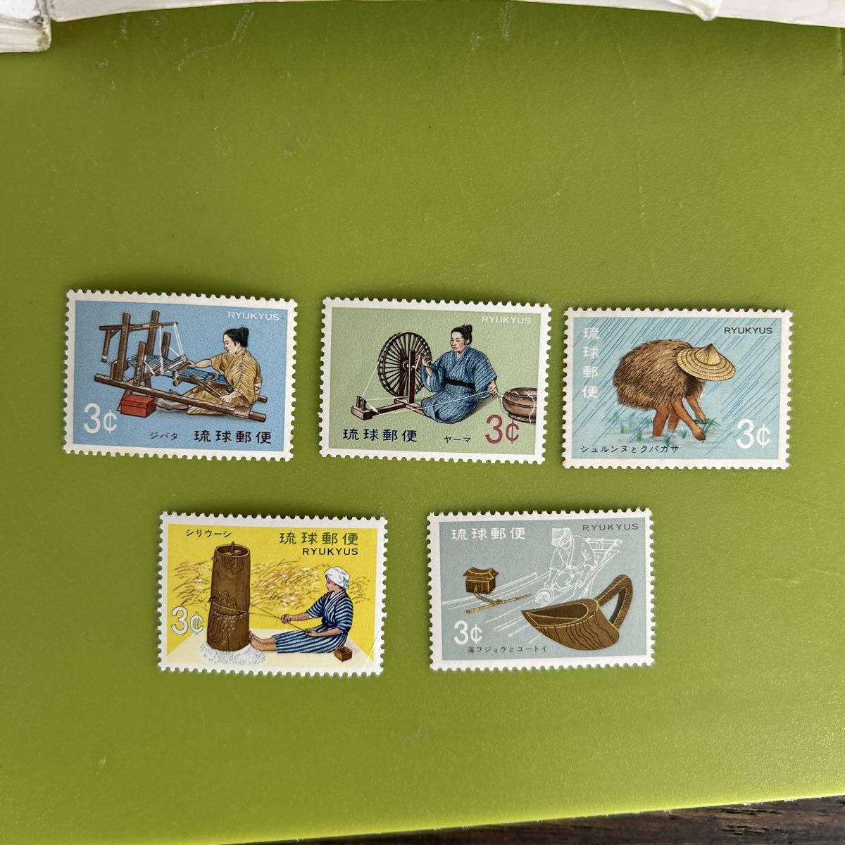 - ★未使用 琉球切手 1971年 民具シリーズ全5種セット ジバタ ヤーマ シュルンヌとクバカサ シリウーシ 海フジョウとユートイ
