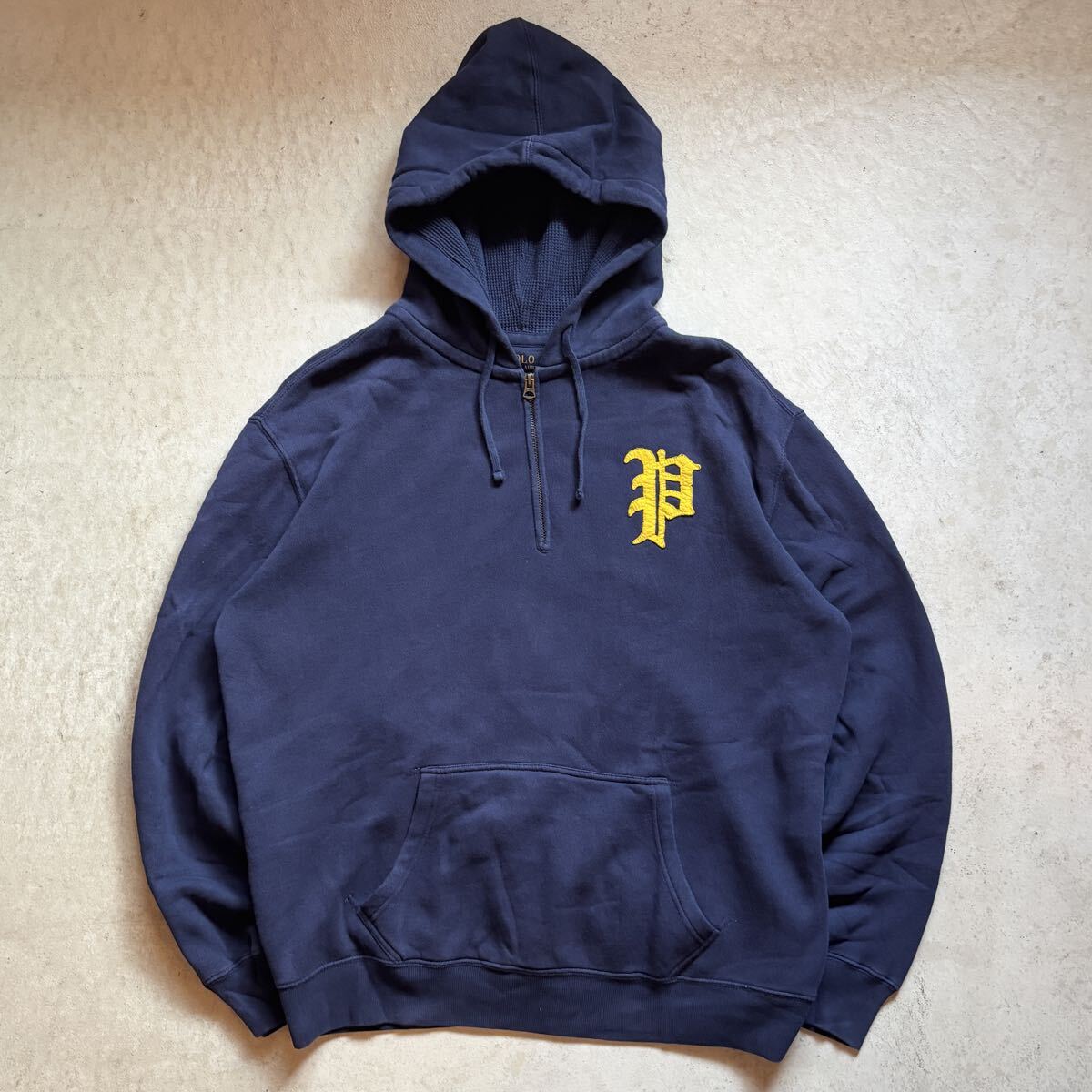 - 【POLO RALPH LAUREN】ポロラルフローレン ハーフジップ スウェット パーカー 紺/NAVY メンズ XL ワンポイント ワッペン 裏起毛 正規品