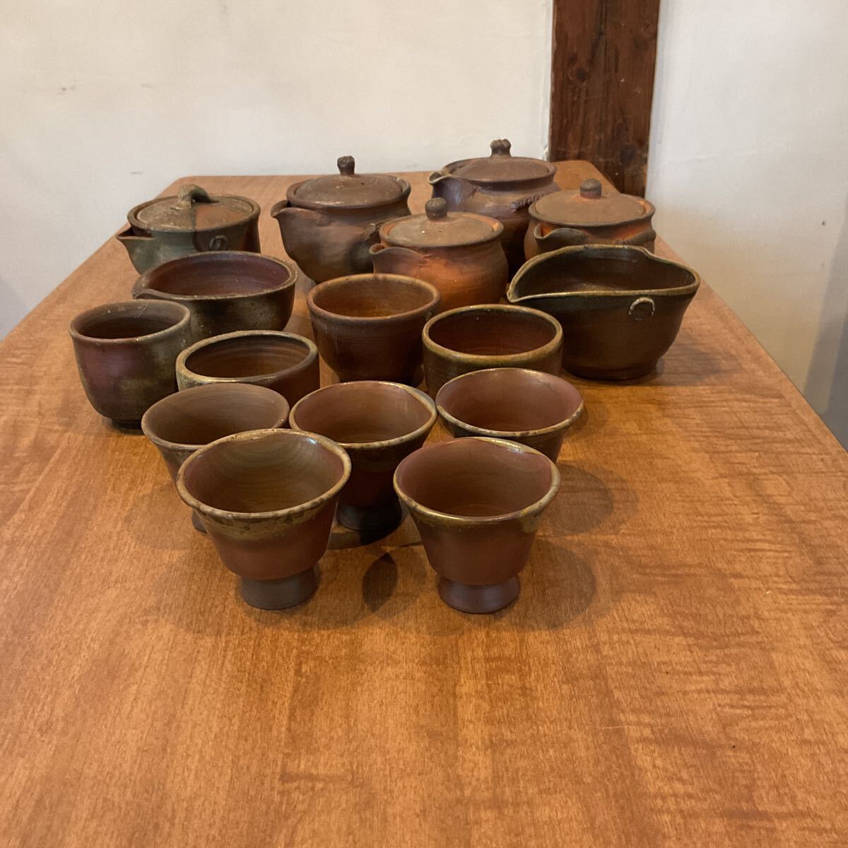 - ★1000円スタート★ 備前焼 16点 まとめ売り 焼き物 宝瓶 湯冷 茶杯 茶器 陶器 詳細不明