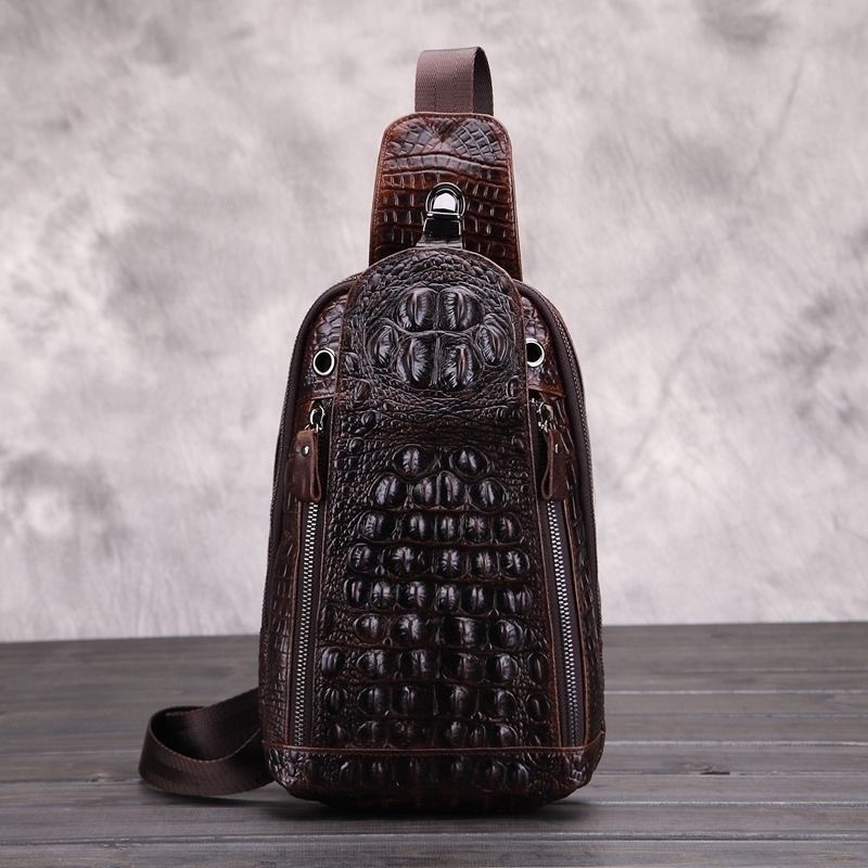 - 新入荷 新作高品質 クロコダイル柄 ファッション 牛革 メンズショルダーバッグ ヴィンテージ クロスボディバッグ
