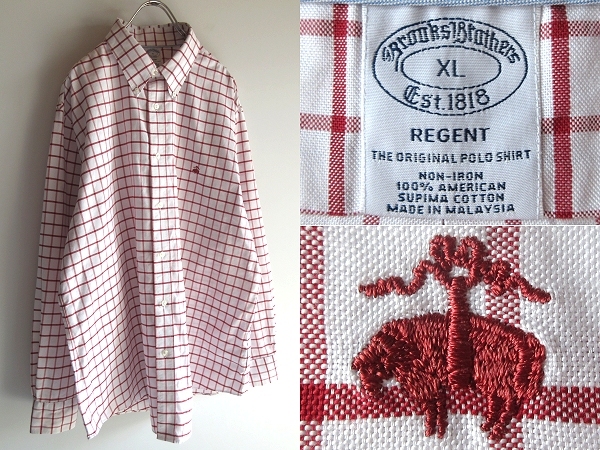 - Brooks Brothers ブルックスブラザーズ REGENT 羊ロゴ刺繍 アメリカンスーピマコットン チェックシャツ オックスフォード BDシャツ XL 赤白