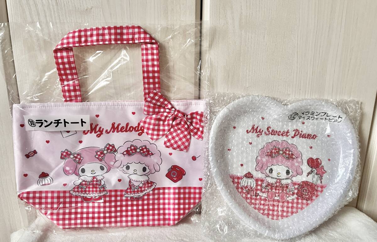 > サンリオ当りくじ★マイメロディ&マイスウィートピアノ ランチトートバッグ メラミンプレート 2点まとめて sanrio kawaii 鞄 お皿 食器