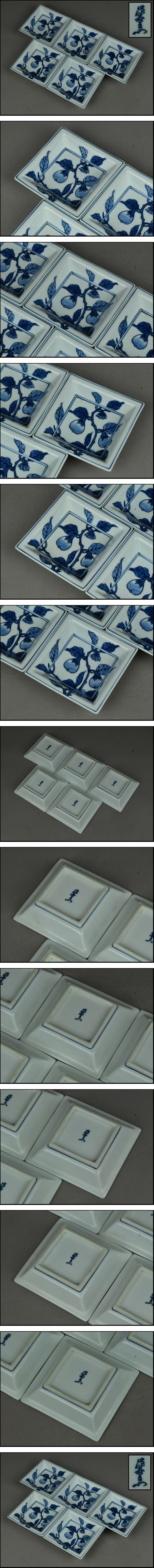 > 【ACT】有田焼【館林源右衛門】染付 茄子絵 銘々皿 五客 茶道具 A7-826-58