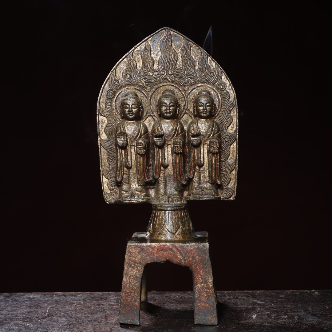 - 精品収蔵 古銅泥金彫 描彩 北魏仏仏像 造像 佛 仏教 宗教密教 招財 鎮宅 家蔵珍品 時代物 古董品 骨董 旧家蔵出し 唐物 中国古玩 古美術品