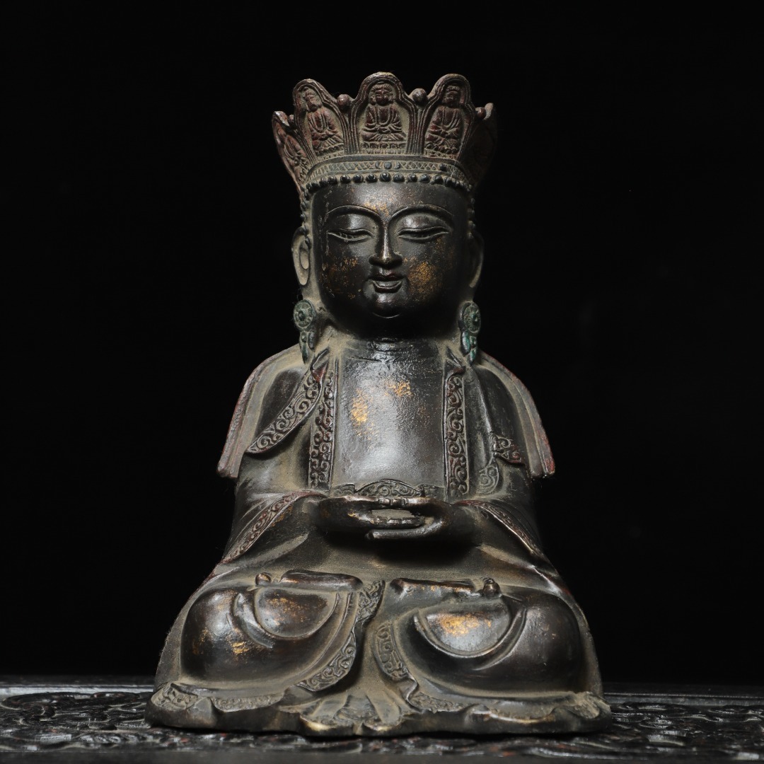 > ◆珍蔵◆中国古美術 明時代 古銅製 拓金 大日如来菩薩 仏教 密宗 銅仏 仏造像 細密細工造 置物 擺件 古賞物 骨董 時代物 A01