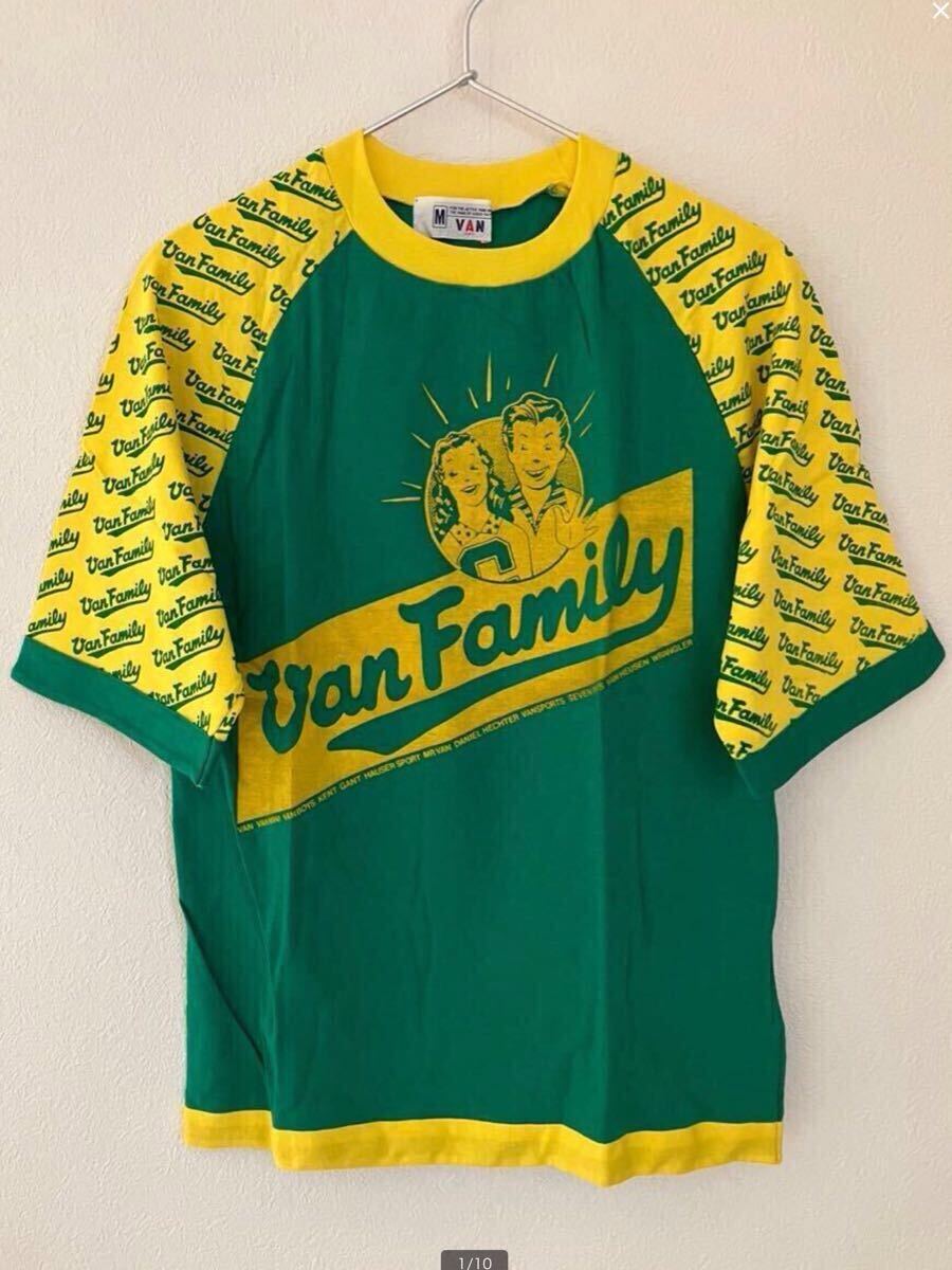 > 70s VAN JAC ヴァンヂャケット 半袖Tシャツ グリーン×イエロー(プリント) 100%COTTON Mサイズ デッドストック ビンテージ Tシャツ