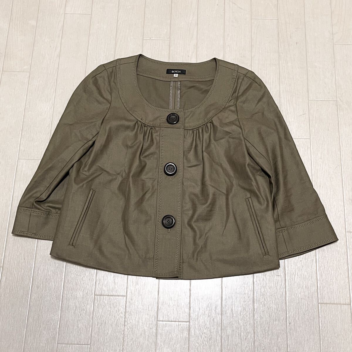 - 和830★ BOSCH ボッシュ ノーカラージャケット ライトジャケット 36 カーキ レディース