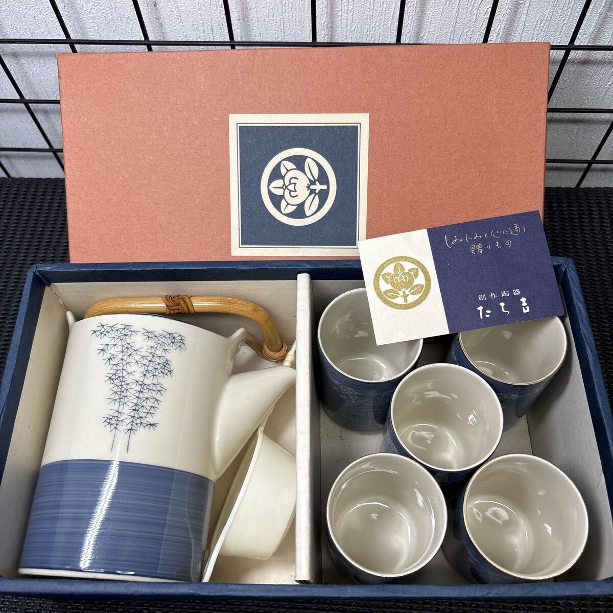 > ★大阪/店舗受け取り可★たち吉 急須 湯呑 5客セット 茶器 「竹林」 YS-3 創作陶器 湯飲み 茶入れ 茶道具 和食器 箱入り ★