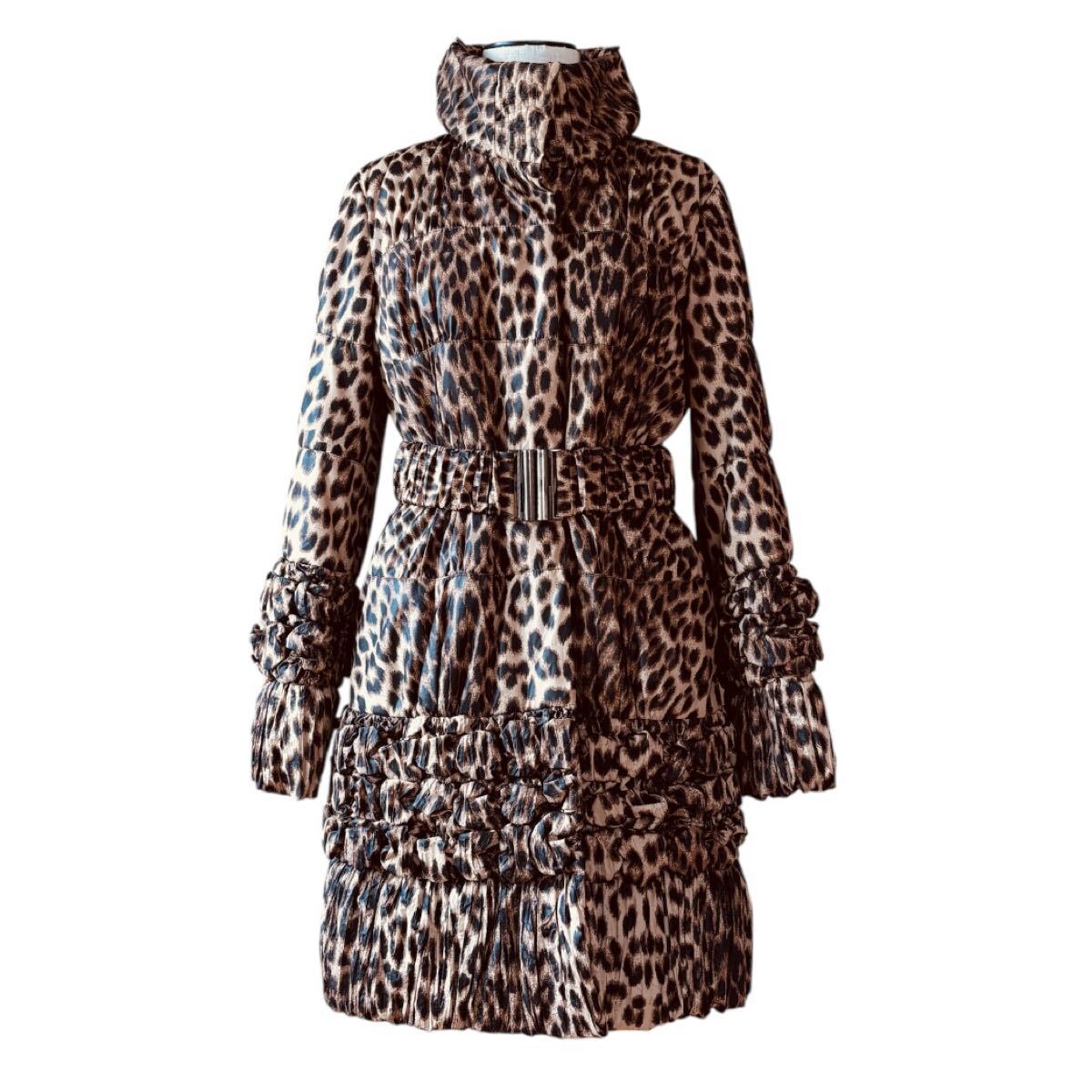 - イタリヤ 伊太利屋 ヒョウ柄 コート 中綿 ベルト