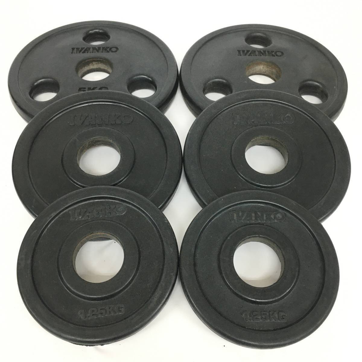 - FNY31/92 IVANKO イヴァンコ オリンピックラバー プレート 5㎏×2 2.5㎏×2 1.25㎏×2 計17.5㎏ 穴径50mm イージーグリップ ウェイト②