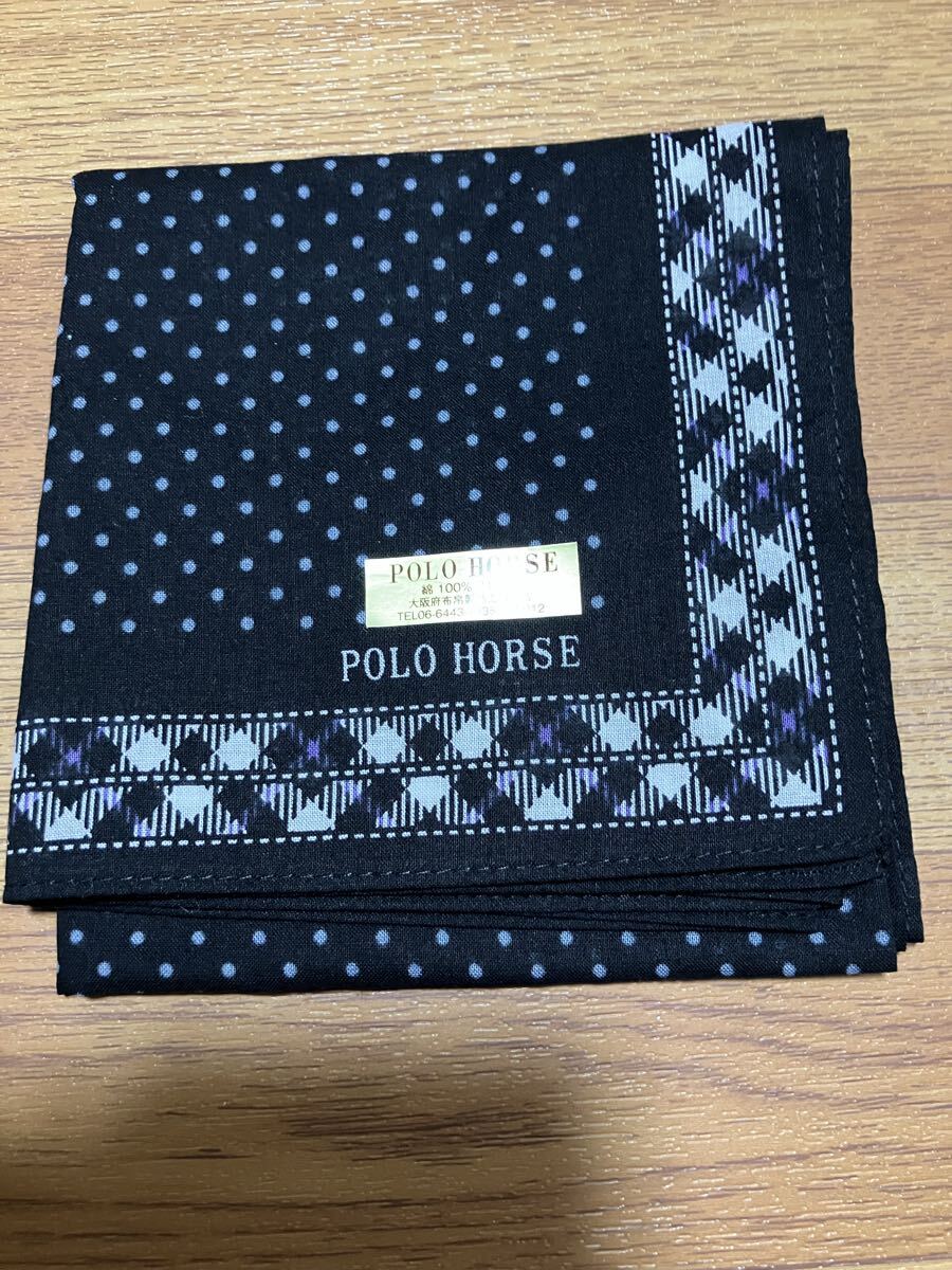 - 新品!メンズ ハンカチ 綿100 日本製 POLO HORSE 黒 ブラック 布帛