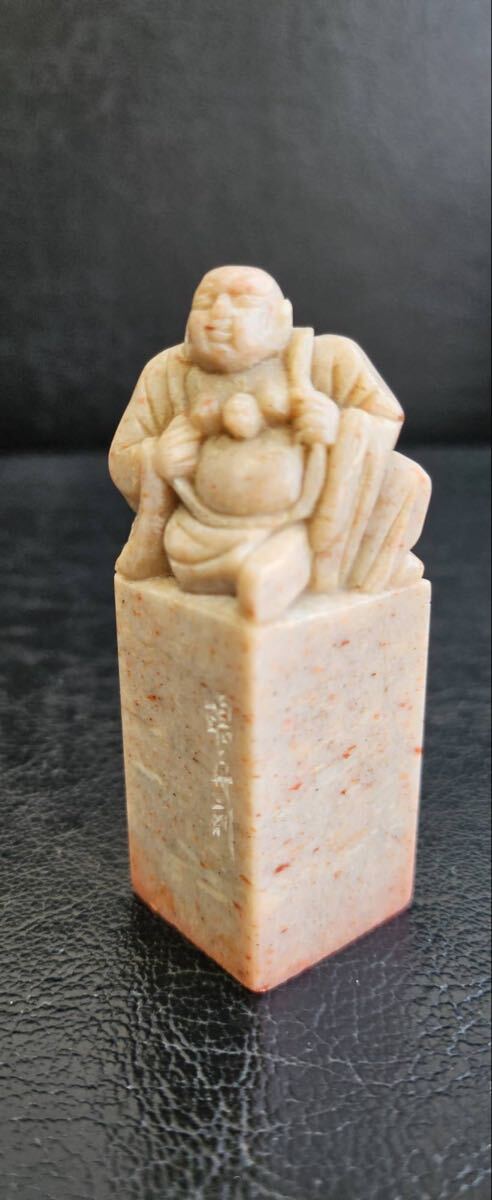 - 印材 印鑑 天然石 中国 中国美術 ピンク石 布袋様彫座印鑑