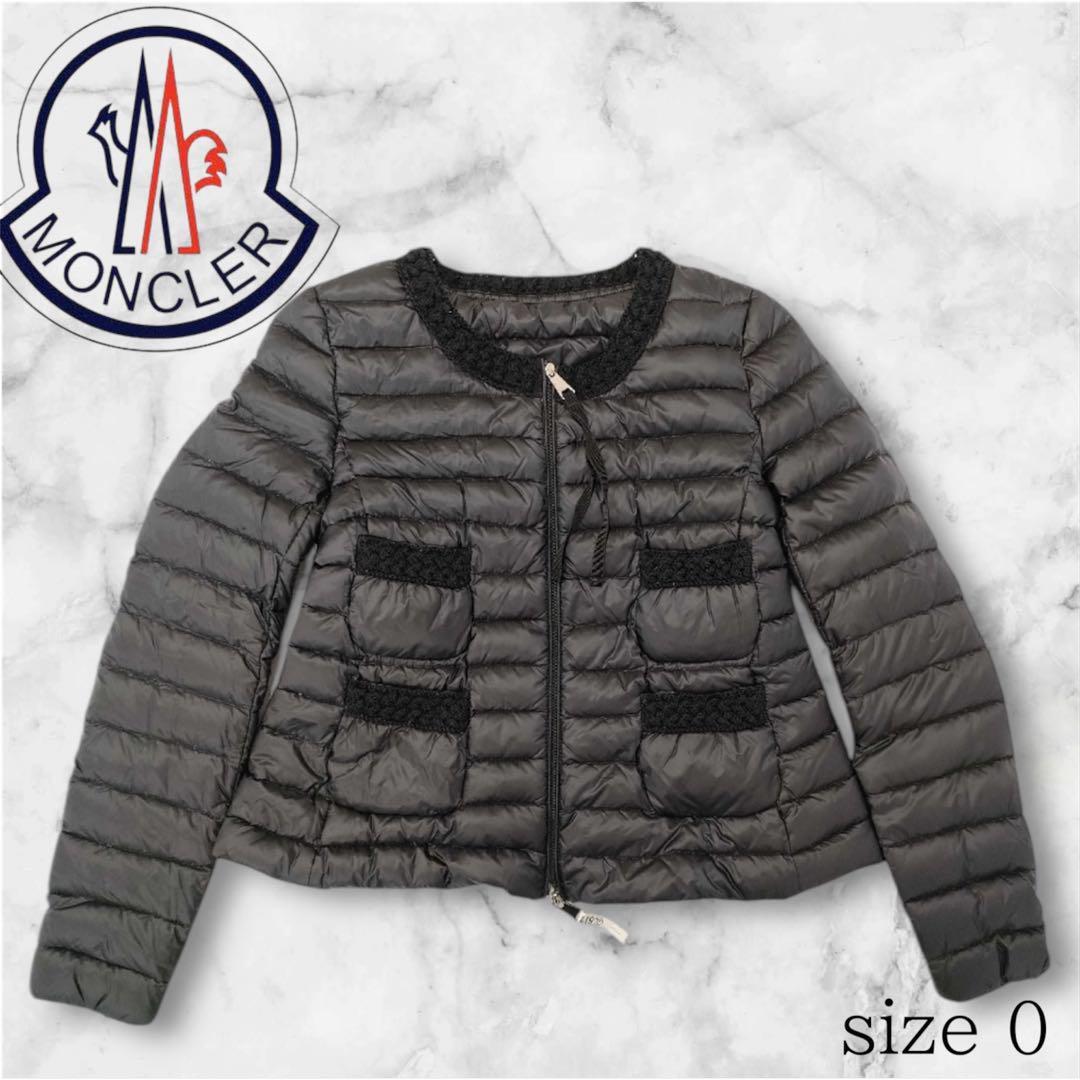 > 美品 MONCLER ノーカラーライトダウンジャケット ポケット サイズ0