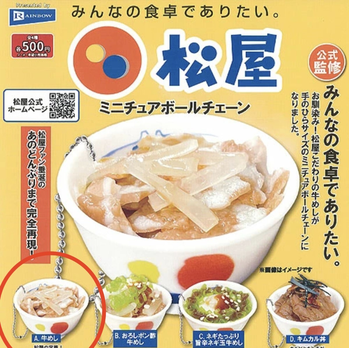 - 松屋ミニチュアボールチェーン / 定番 牛めし / 新品未使用品 ガチャ