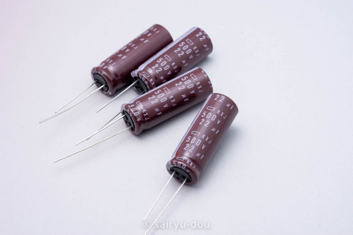 - 日本ケミコン KXJ 500v/22μF 105℃ 高耐圧・長寿命 電源入力平滑用 電解コンデンサ 新品4個セットB