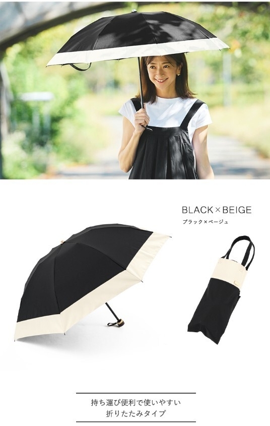 - BICHERIE. 100%完全遮光日傘 ビシェリ日傘 完全遮光 晴雨兼用 折りたたみ傘 ブラック×ベージュ 新品 未使用 タグ付き 日傘