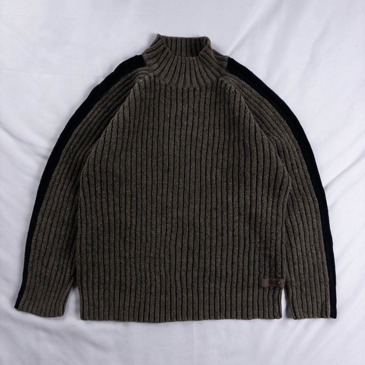 - US Vintage オーストラリア製 90s UNIONBAY アクリル ウール モックネック ラグラン 起毛 ベロア 立体 太畝 パッチ オリーブ ニット