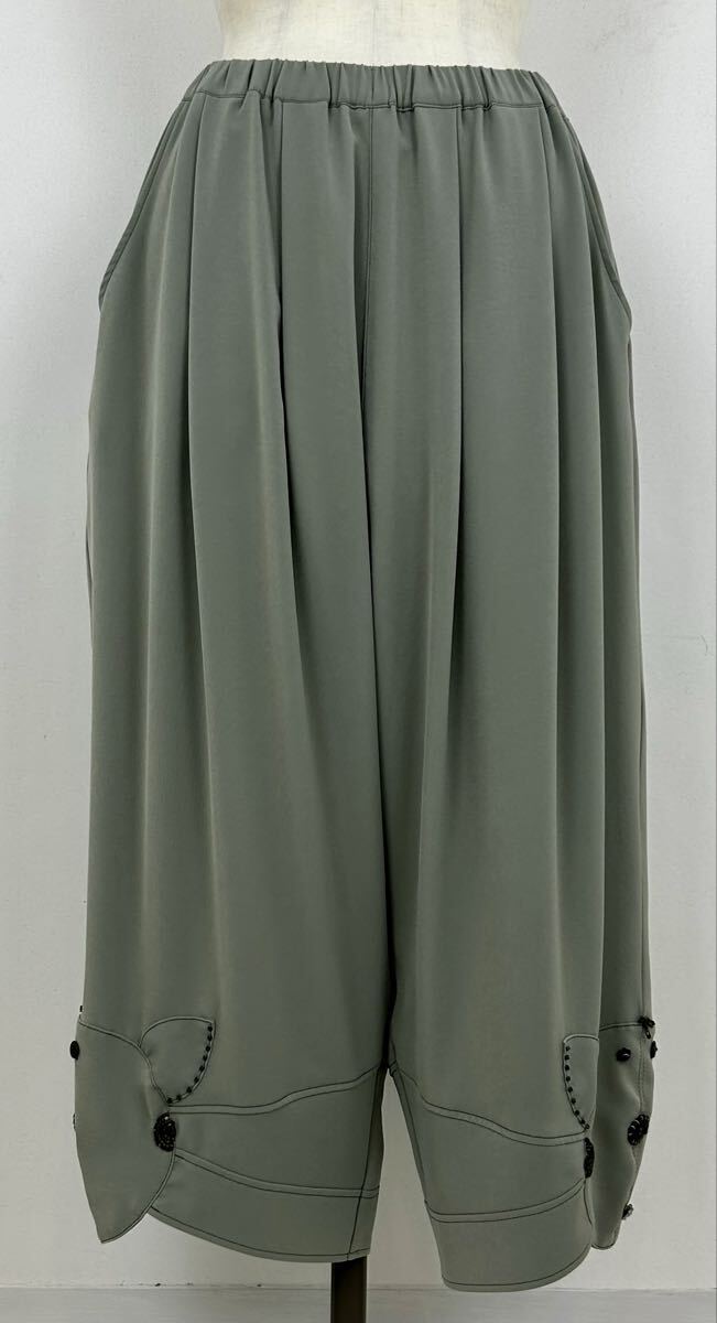 - ★【新品送料無料】 ALBEROBELLO アルベロベロ サルエルパンツ グリーン モス ゆったりゴム M ビーズ刺繍 アップリケ 218065売り切り必見