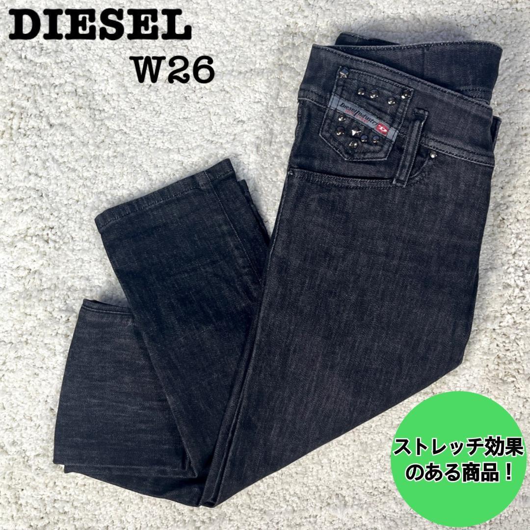 - 美品 小さいサイズ ディーゼル W26 MATIC レディース ストレッチ 黒 姫 ブラック デニム ジーンズ ジーパン スタッズ DIESEL