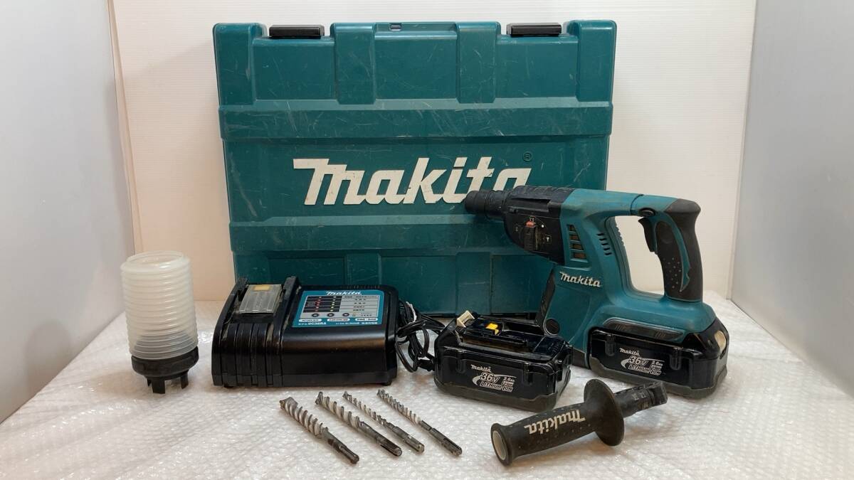> makita 36v 26mm充電式ハンマドリル フルセット【36vバッテリー×2個、充電器、ケース、ハンドル、他】 動作品