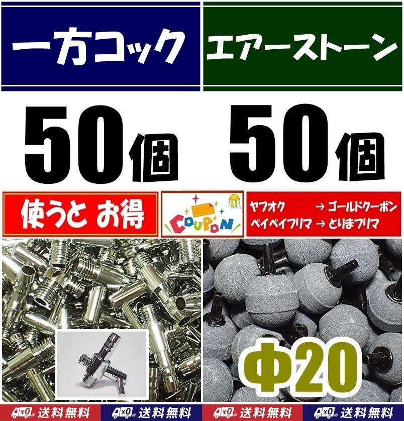 > 【送料込】 一方コック 50個+エアーストーン 50個 エアーコック シュリンプ・金魚・メダカ水槽のエアー供給用に エアーポンプ圧調整に