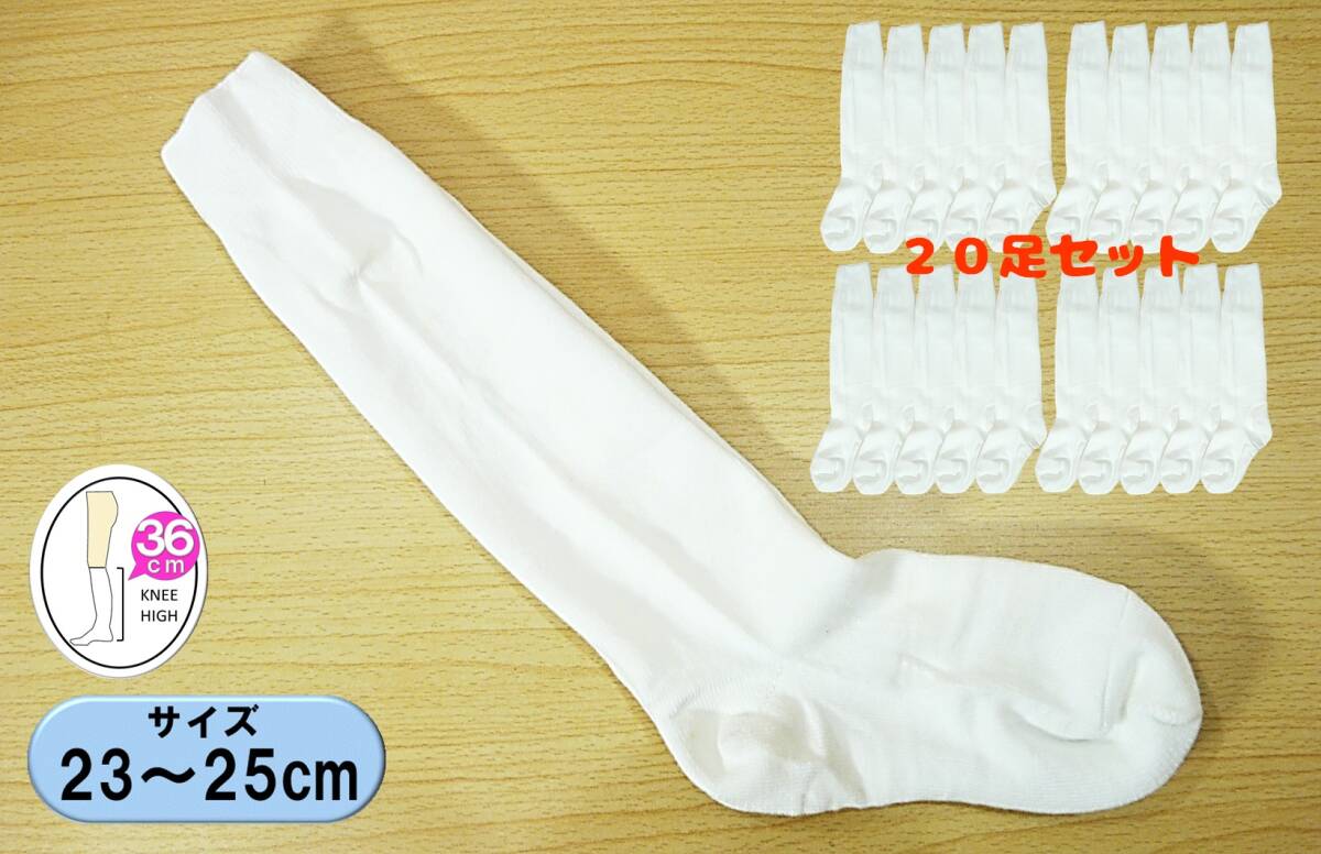- 【レッグウェア★未使用品】平編み◆よく伸びる 白 ハイソックス20足◆23-25cm◆36cm丈◆工場直売・未成型品◆スクール◆コスプレ◆