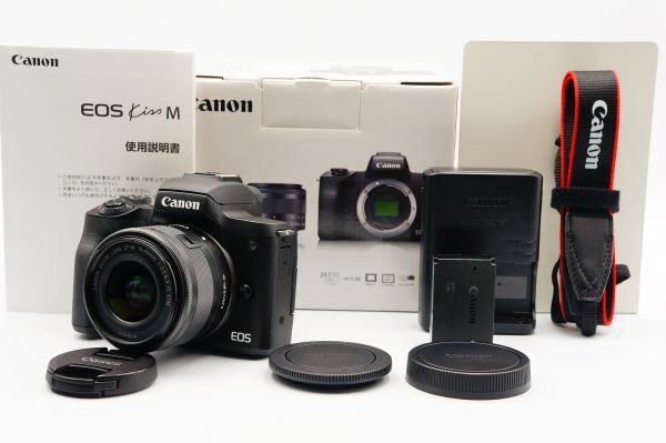 > ☆美品・ショット数8000回以下☆Canon EOS KISS M EF-M18-45 STM レンズキット ブラック 元箱、取説