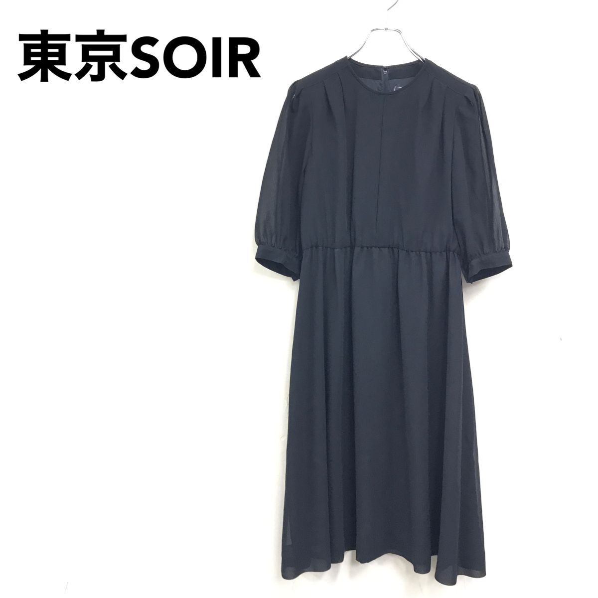 - 2K1330-R◆東京SOIR トーキョーソワール ブラックフォーマルワンピース◆サイズ9 レディース 婦人 喪服 春夏 シアーショルダー 黒