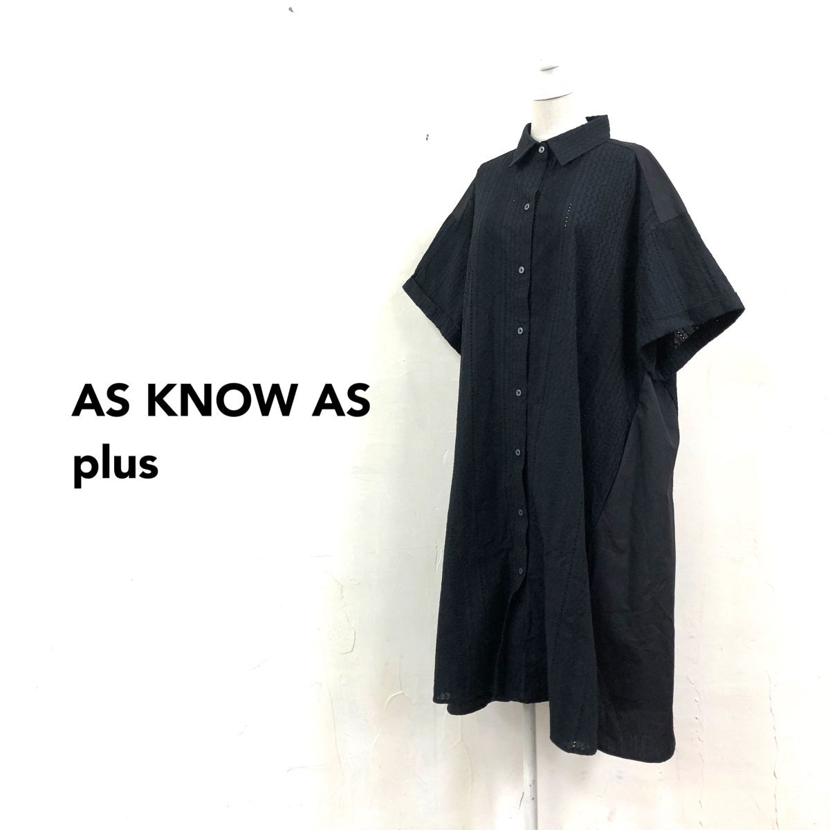 > 2K1133-G-N◆ AS KNOW AS plus アズノゥアズプラス 刺繍レースシャツワンピース 半袖 フレア ロング 異素材 ロールアップ袖 ◆ sizeF 黒 綿