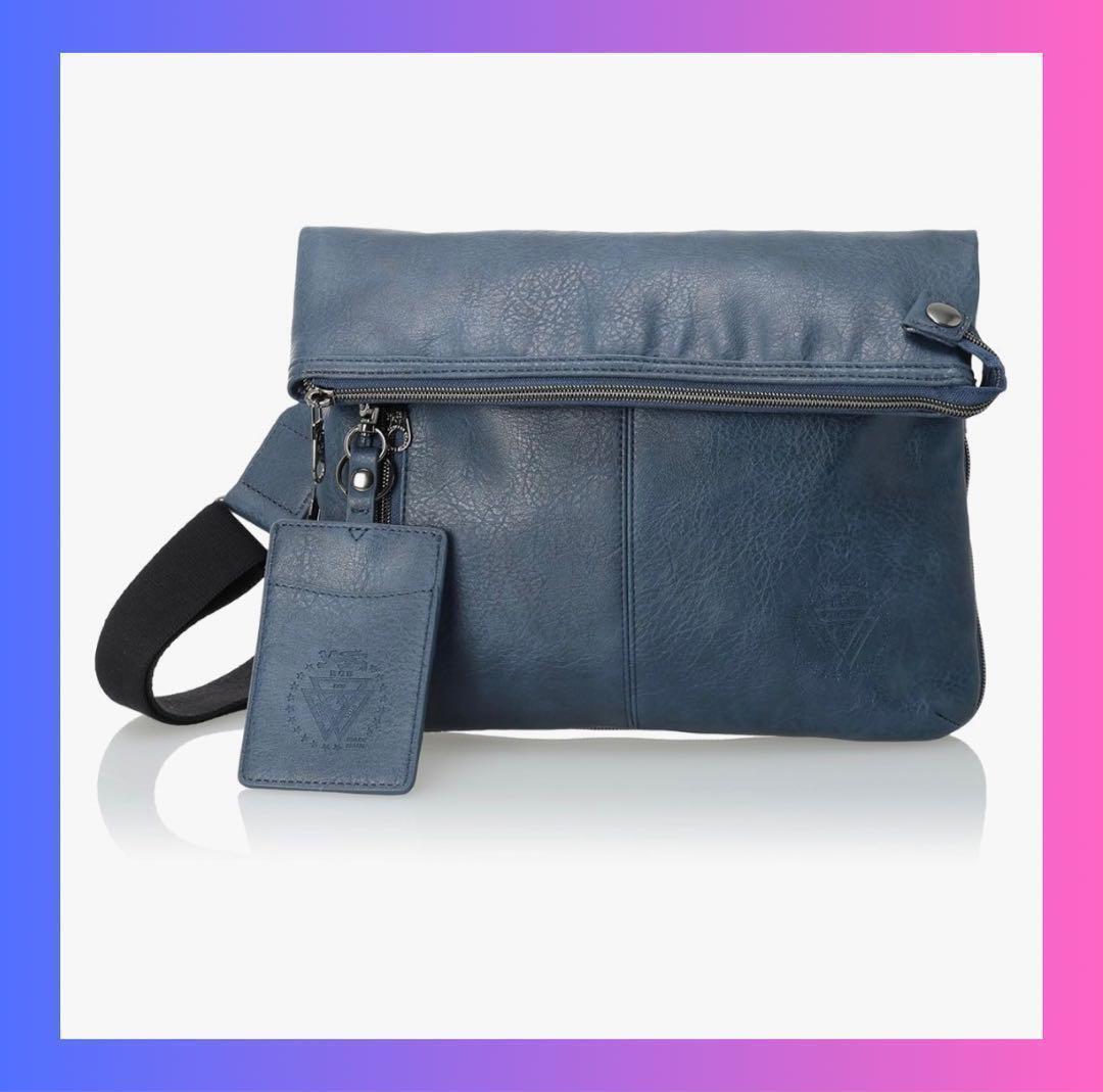 - ショルダーバッグ ネイビー パスケース付き 電車移動 通勤 通学 合皮撥水