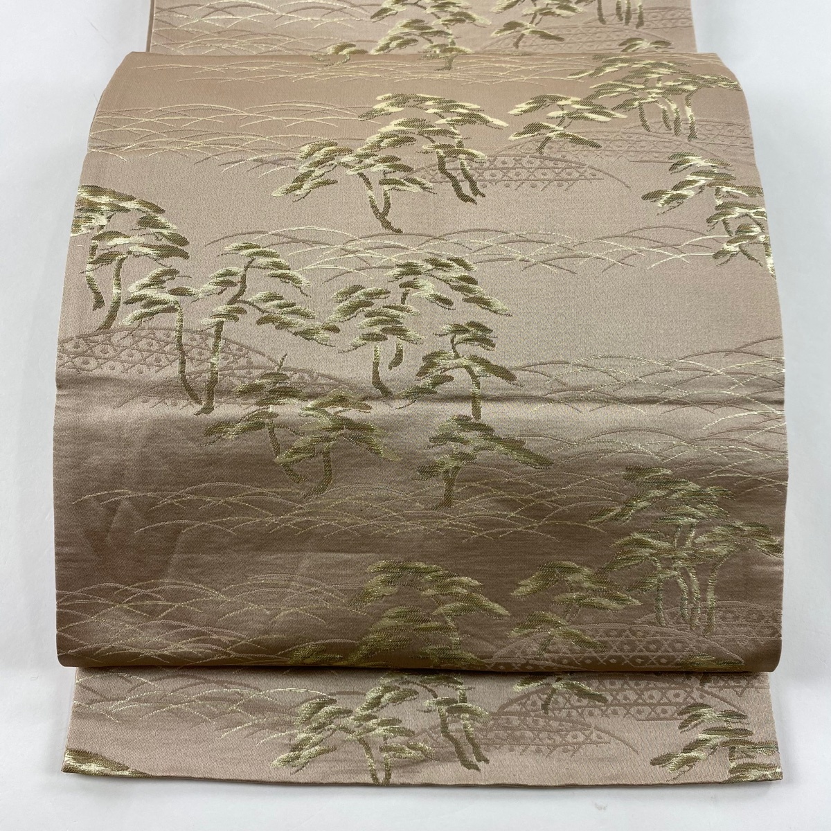- 名古屋帯 美品 優品 松 芝 金糸 箔 ピンクベージュ 正絹 【中古】