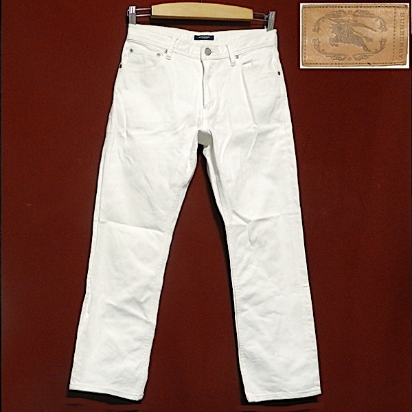 > BURBERRY LONDON バーバリー ロンドン ストレッチ ストレート ロゴ デニム パンツ カラーパンツ ホワイトデニム 32 / M 美品