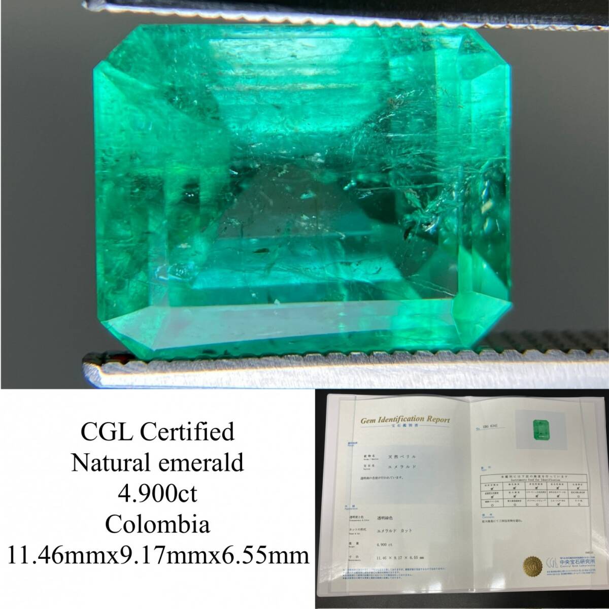 - エメラルド 天然 4.900ct コロンビア 中央宝石鑑別書付き 11.46×9.17×6.55 ルース( 裸石 ) 6615YY