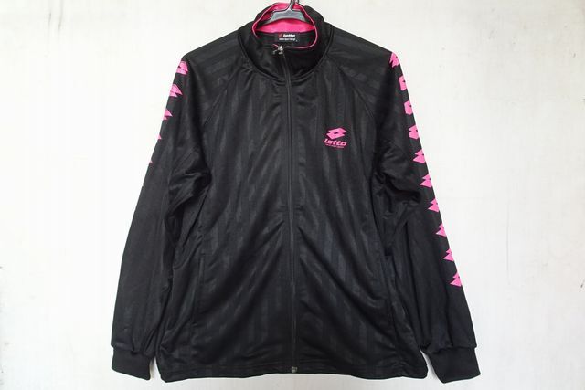 > Lotto/ロット/長袖トラックジャケット/ジャージ素材/同色ストライプ柄/前ジップアップ/ロゴプリント/黒/ブラック/Lサイズ(9/8R7)