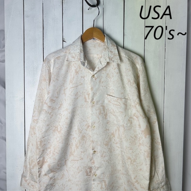 > sh●A13 USA古着 70s~ 薄総柄シャツ L程度 オールド ヴィンテージ アメリカ古着 長袖 ポリシャツ ヨーロッパ ユーロ