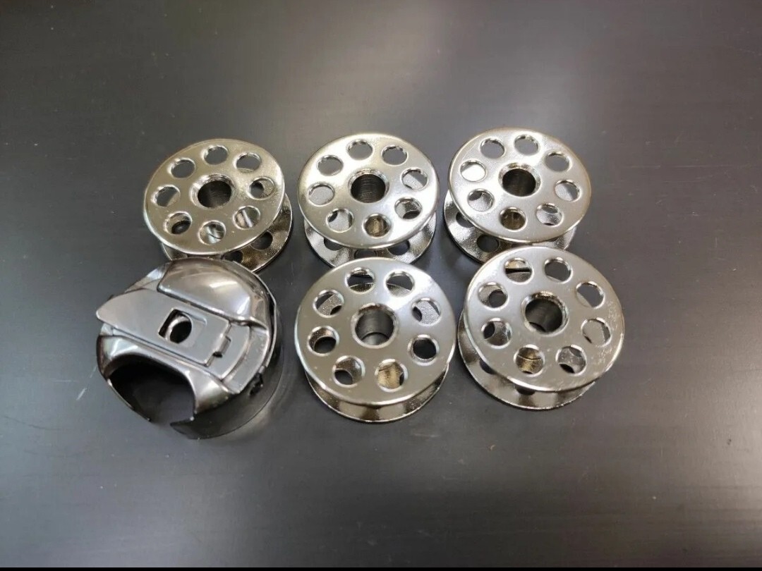 - ☆ 大幅値下げ! ☆ 上下送り 本縫い 工業ミシン用 倍釜 ボビンケース 空転防止バネ付 + 対応ボビン5個セット 糸締まり良好 c2
