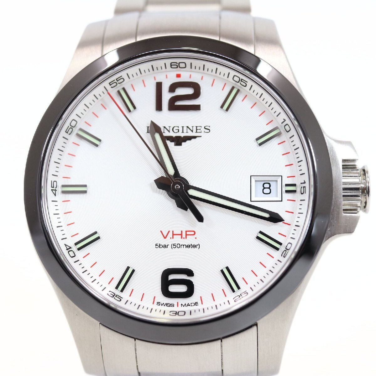 - ロンジン LONGINES コンクエスト V.H.P. L3.719.4 クォーツ 白文字盤 デイト メンズ 腕時計 未使用級 中古 / 12512 HMR